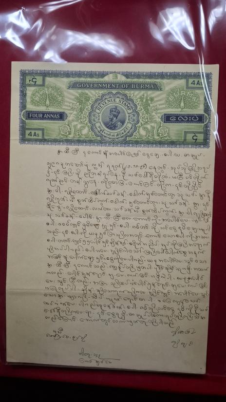 กระดาษอากรแสตมป์ของรัฐบาลพม่า ช่วงปี1936(พศ.2476)