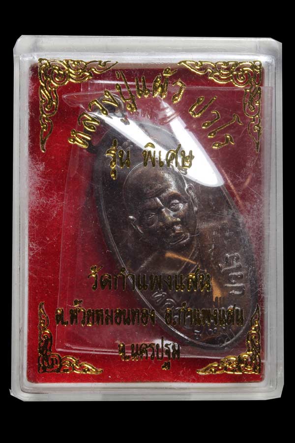 เหรียญใบขี้เหล็กย้อนยุค ปี 57 รุ่นพิเศษ เนื้อทองแดง หลวงปู่แผ้ว วัดกำแพงแสน จ.นครปฐม พร้อมกล่องเดิม