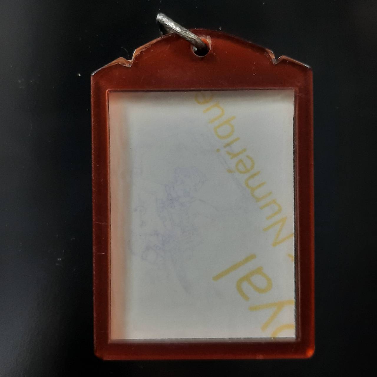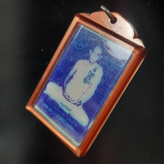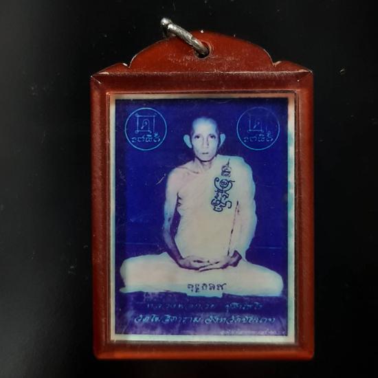 รูปถ่ายหลวงพ่อกวย วัดโฆษิตาราม หลังปั๊มยันต์พระยาชิงชัย(หนุมานเชิญธง) ปี2552 เลี่ยมกันน้ำวินเทจเดิมอย่างดี สภาพเดิมๆ