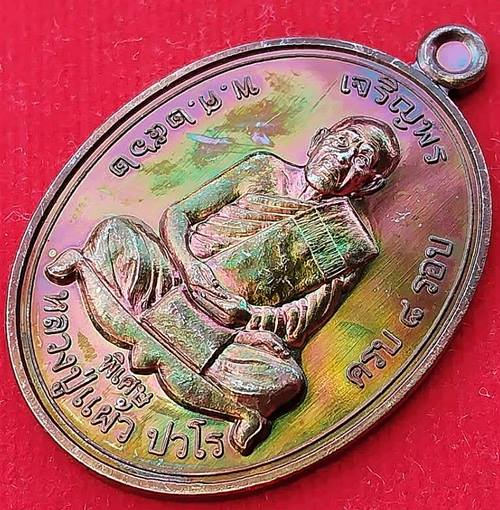 เหรียญเจริญพรบน เนื้อทองแดง หลวงปู่แผ้ว วัดรางหมัน พร้อมกล่องเดิม