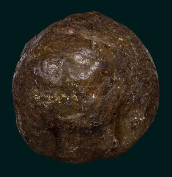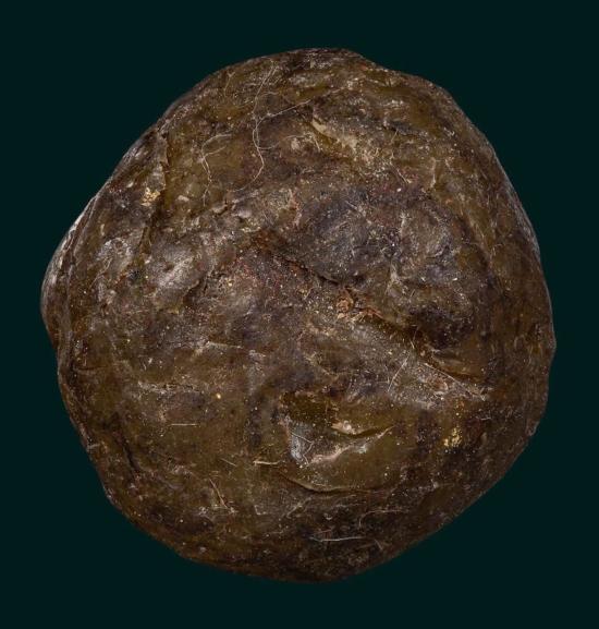 ลูกอมเนื้อเทียนชัย สีออกเข้ม ไม่ทราบที่ค่ะ มีคราบทองเปลวติดมานิดๆค่ะ ขนาด 1.5 ซม.ค่ะ
