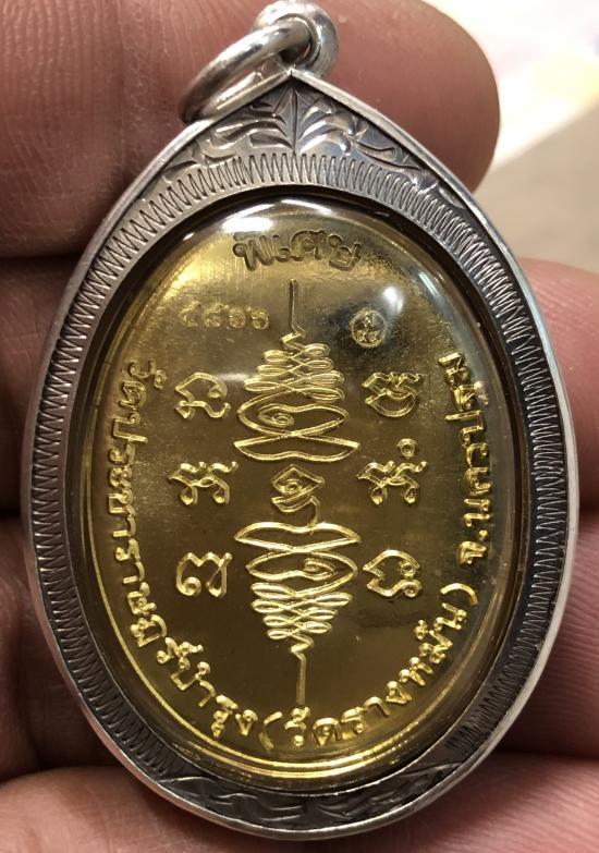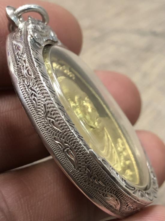 หลวงปู่แผ้ว รุ่นยันต์สวน 99 ปี เนื้อทองฝาบาตร หมายเลข๔๘๖๖เลี่ยมเงินหนาๆกันน้ำพร้อมใช้