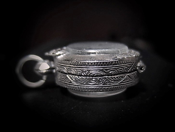ชื่อพระเครื่อง ตลับเงินผสมมือ2ใส่พระทรงกลม