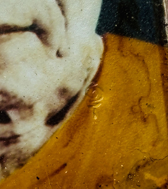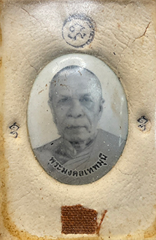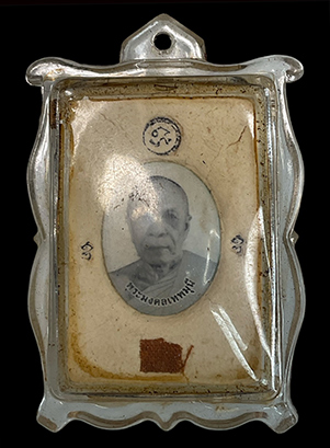 ล็อกเก็ตรูปหลวงพ่อสด วัดปากน้ำ ด้านหน้าตอกโค๊ต หลังฝังล็อคเก็ต จีวรและยันต์
