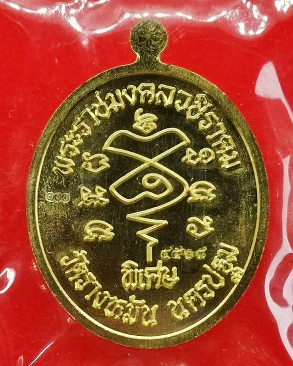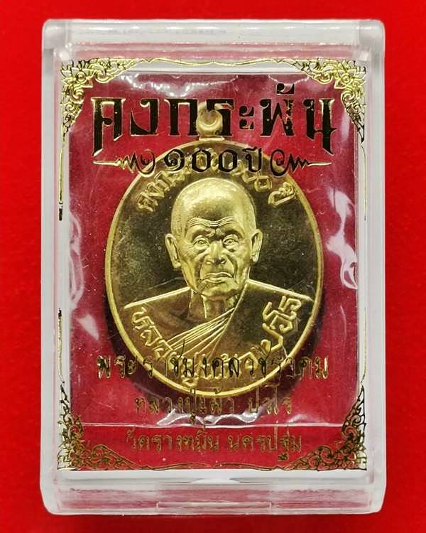 เหรียญคงกระพัน เนื้อทองฝาบาตร หลวงปู่แผ้ว ปวโร วัดรางหมัน จ.นครปฐม มีกล่อง