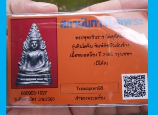 เคาะเดียวแดง.พระพุทธชินราชรุ่นอินโดจีน พิมพ์ต้อบัวเล็บช้าง ผิวพรายเงิน ปี2485