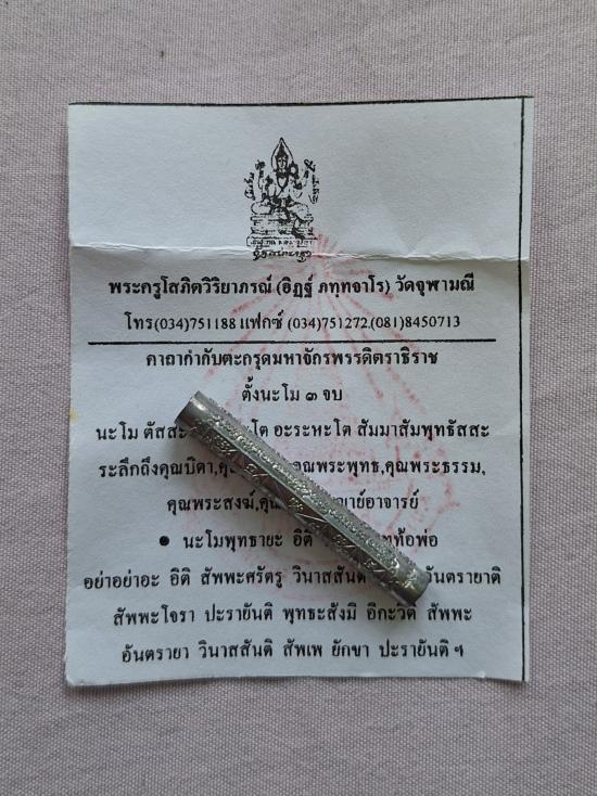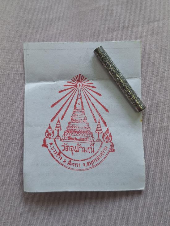 ตะกรุดจักรพรรดิตราธิราช เนื้อตะกั่ว ขนาดยาว 1.5 นิ้ว (ปั้ม) หลวงพ่ออิฏฐ์ วัดจุฬามณี ปลุกเสก 5 ปี ตอกโค๊ด เต็กเหล็ง พร้อมซองใบคาถาเดิมประทับตราจากวัด