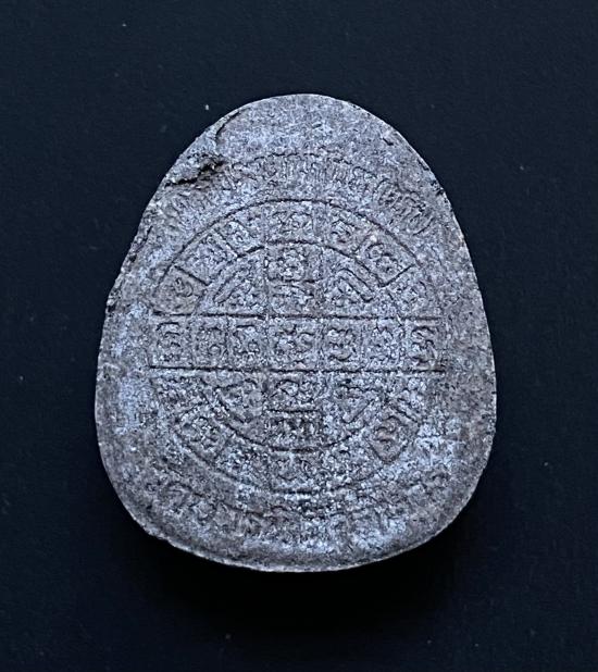 พระปิดตายันต์ดวงเล็ก ปี2523 สมเด็จพระญาณสังวร (เจริญ) วัดบวรนิเวศ_(เนื้อผงใบลาน)_