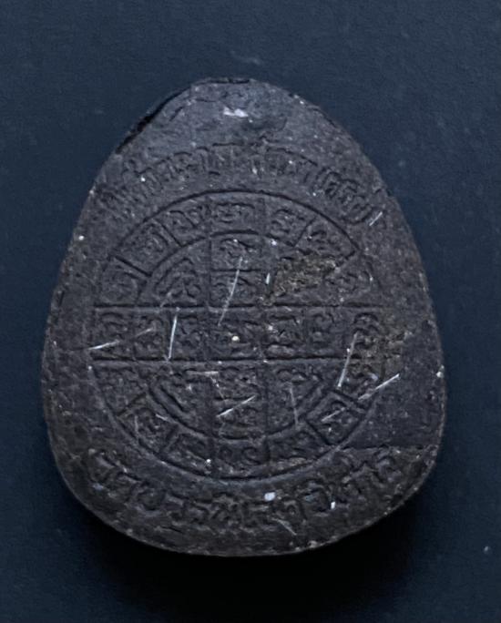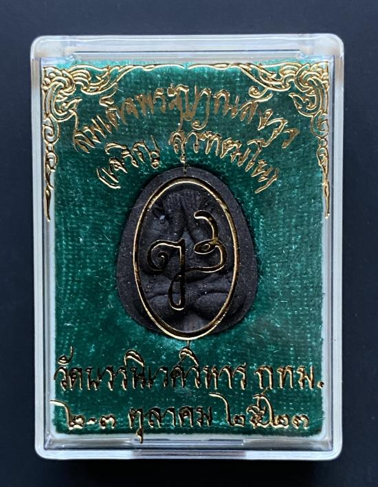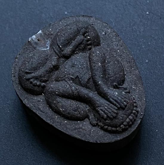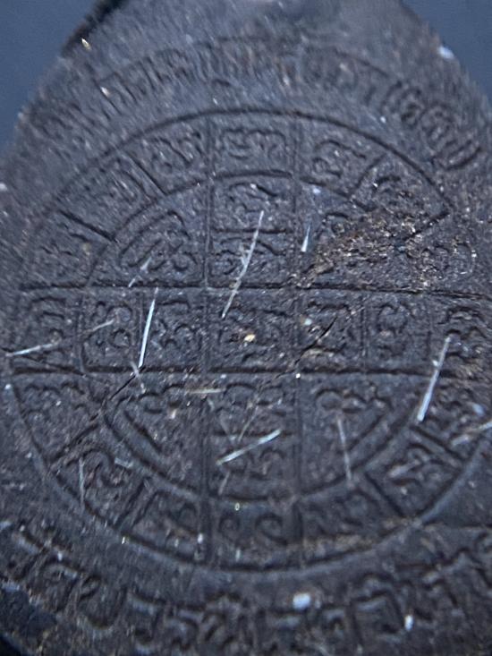 พระปิดตายันต์ดวงเล็ก ปี2523 สมเด็จพระญาณสังวร (เจริญ) วัดบวรนิเวศ_(เนื้อผงใบลานโซนเข้ม _มีเส้นเกศาเยอะ)_มีกล่อง_