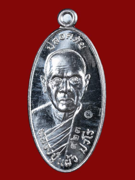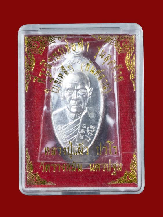 หลวง ปู่แผ้ว วัดรางหมัน จ.นครปฐม หมายเลข 923 รุ่นสุดท้าย พิมพ์เล็ก เนื้อเงิน ปี2556 พร้อมกล่อง+บัตรรับรอง