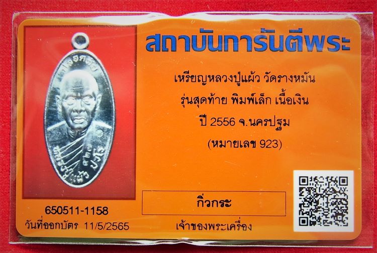หลวง ปู่แผ้ว วัดรางหมัน จ.นครปฐม หมายเลข 923 รุ่นสุดท้าย พิมพ์เล็ก เนื้อเงิน ปี2556 พร้อมกล่อง+บัตรรับรอง 33254633