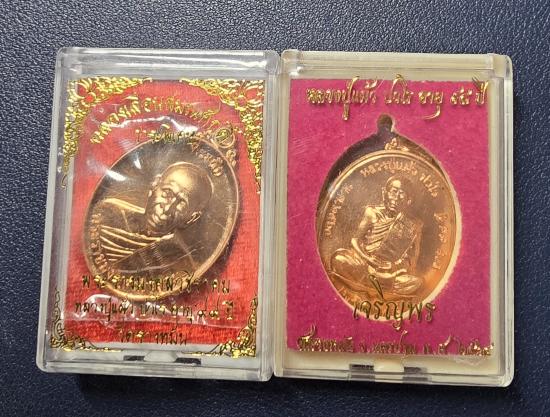 @@@ทีเดียว2เหรียญ@@@เหรียญเจริญพรล่าง+เหรียญเลื่อนสมณศักดิ์ หลวงปู่แผ้ว วัดรางหมัน ปี เนื้อทองแดง พร้อมกล่องครับ