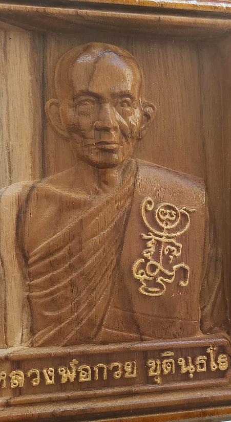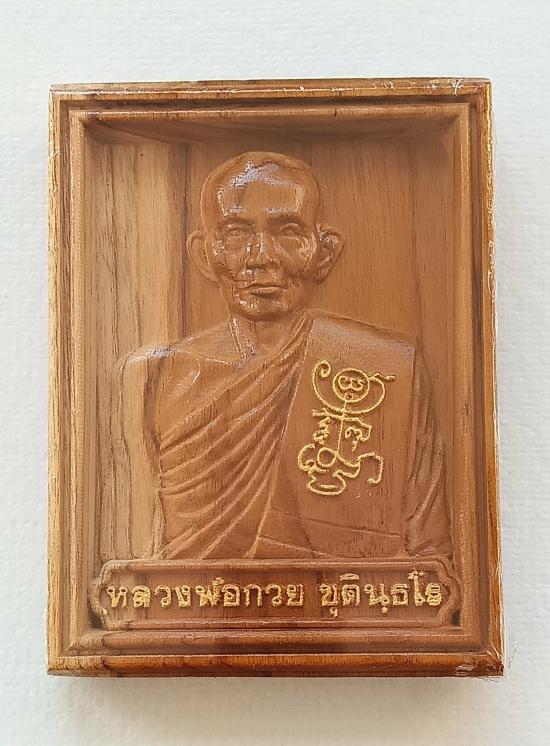 รูปไม้แกะหลวงพ่อกวย ขนาดเล็ก รุ่นศิษย์มีหลัก ปี 2567 ยิงเลเซอร์เลข ๔๐๕ ออกที่วัดโฆสิตารามโดยตรง ((บานนี้ลายไม้สวย จมูกโด่ง อยู่ในซีลเดิมจากวัดไม่ผ่านการใช้งาน รับประกันพระตามกฎครับ))