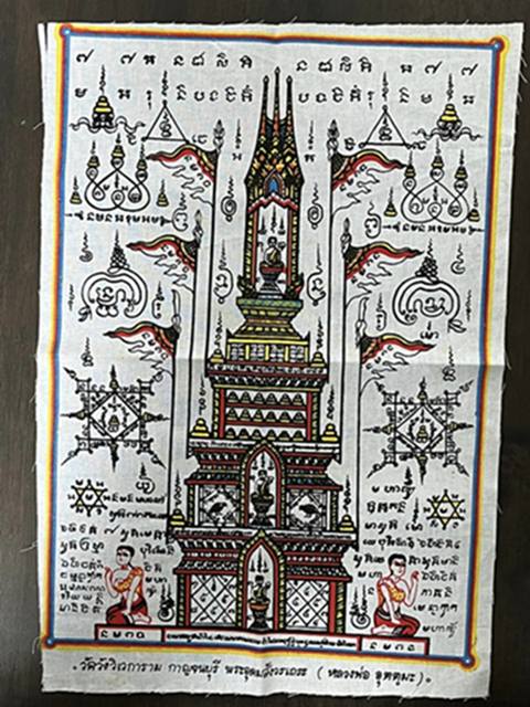 ผ้ายันต์อิติปิโสธงชัยนางกวักคู่ หลวงพ่ออุตตมะ วัดวังก์วิเวการาม