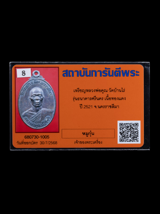 เหรียญธนาคารศรีนคร ปี 2521 พร้อมบัตรรับรอง