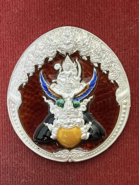 เหรียญนารายณ์ทรงครุฑประทับราหู ท่านเจ้าคุณธงชัย วัดไตรมิตร ปี 48 เนื้อเงินลงยา พิมพ์ใหญ่ ผิวเดิมไม่ล้าง ไม่มีกล่อง เคาะเดียวแดงครับ