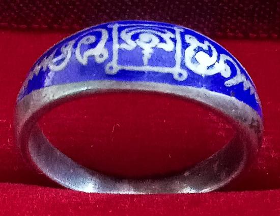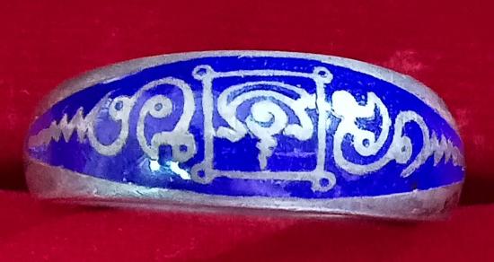 แหวนยันต์เงินลงยา หลวงพ่อมงคลบพิตร วัดมงคลบพิตร จ.พระนครศรีอยุธยา เนื้อเงินลงยาราชาวดี สีน้ำเงิน สร้าง ปี พ.ศ. 2553 ไซซ์ประมาณ 54 น.น ประมาณ 5 กรัม สภาพใช้แต่ยังสวยตามรูป ส่งฟรีทั่วไทย รับประกันตามกฎครับ
