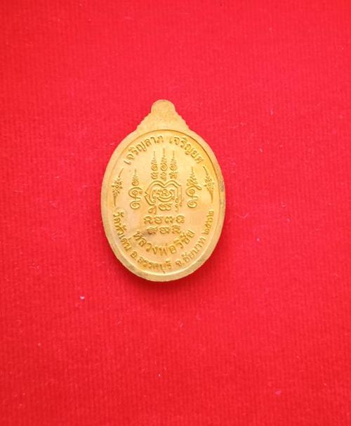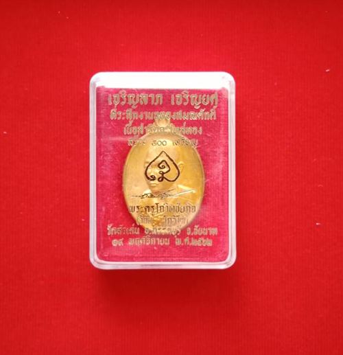 เหรียญหลวงพ่อวิชัย วัดหัวเด่น รุ่นเจริญลาภ เจริญยศ ปี62(รุ่น2)เนื้อสำริดกะไหล่ทอง มีรอยจาร เลขสวยสองหลัก