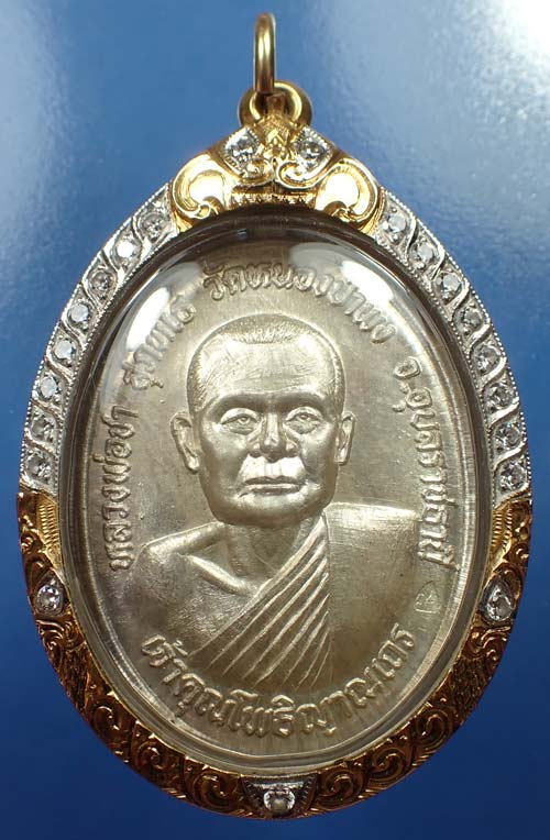 เหรียญหลวงปู่ชา วัดหนองป่าพง เนื้อเงิน+เลี่ยมทองคำแท้ สภาพแชมป์ประเทศไทย+บัตรรับรองพระแท้*102