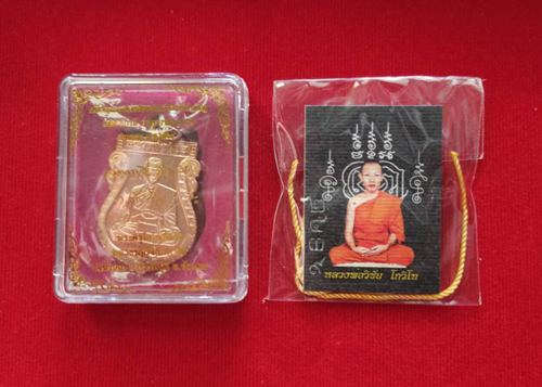 หลวงพ่อวิชัย วัดหัวเด่น เหรียญเสมาหลังสิงห์นพเก้า + รูปถ่ายหลังยันต์ จีวรปั๊มสิงห์ สายสินธุ รวม 2 อย่าง