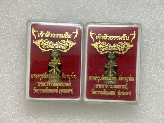 ท้าวเวสสุวรรณ เจ้าสัวธรรมชัย พระอาจารย์ภัทรญาโณ ภิกขุ วัดธรรมชัยมงคล (ทุ่งละคร) จ.เชียงใหม่ สูง 2.3 ซ.ม. เนื้อบรอนซ์ทอง กล่องเดิม ( 2 องค์ )