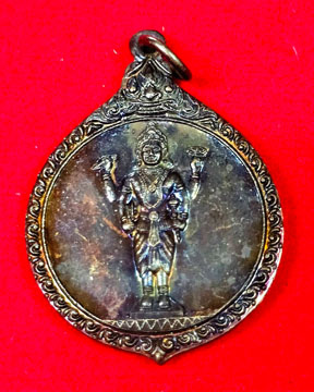 เหรียญพระนารายณ์ทรงยืนหลังพระนาคปรก หลวงพ่อพรหม วัดขนอนเหนือ เนื้อทองแดง ปี 2532