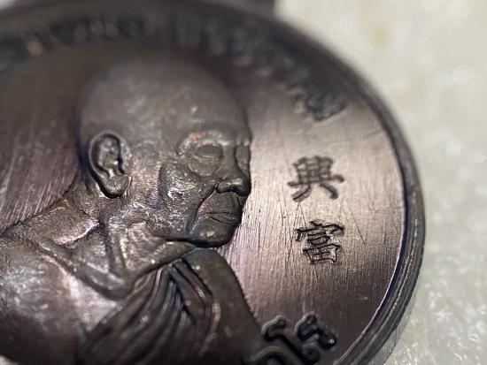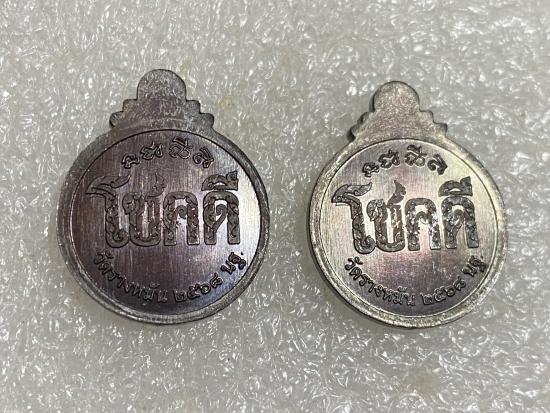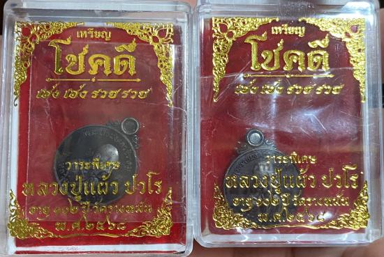 หลวงปู่แผ้ว ปวโร วัดรางหมัน รุ่น โชคดี รวยรวยรวย (เนื้อทองเเดงรมดำ 2 เหรียญ)