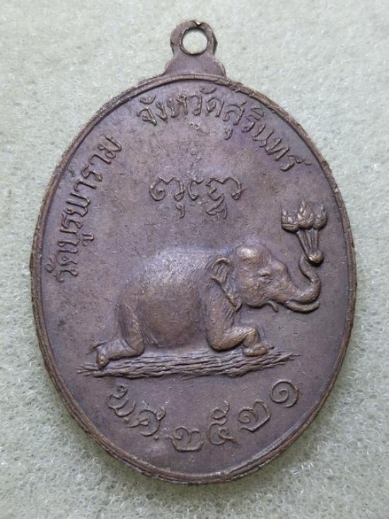 เหรียญช้างหมอบ หลวงปู่ดุลย์ วัดบูรพาราม เนื้อทองแดง ปี2521 จ.สุรินทร์