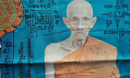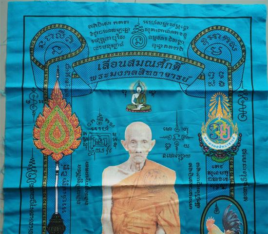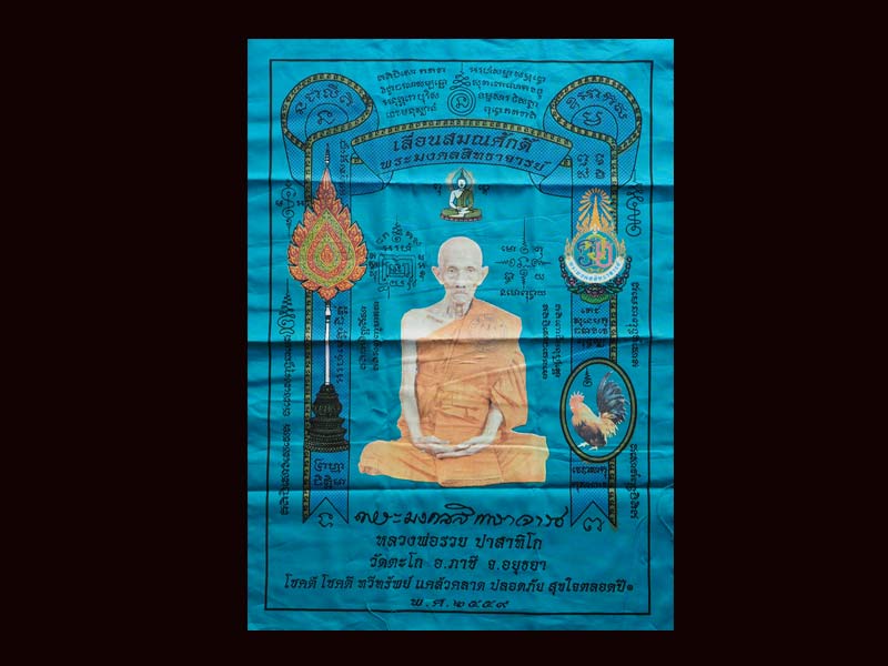 ลพ.รวย วัดท่าตะโก ผ้ายันต์ รุ่นเลื่อนสมณศักดิ์ มีปั้มตราวัด สีฟ้า(F27)