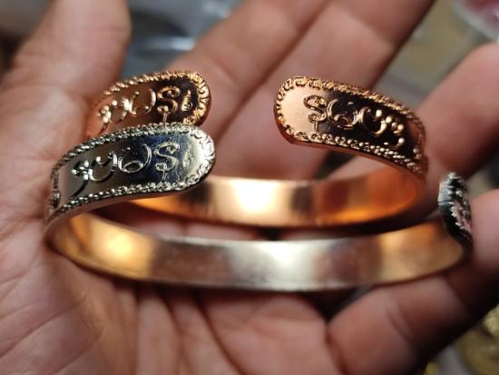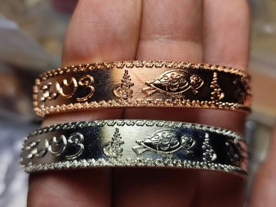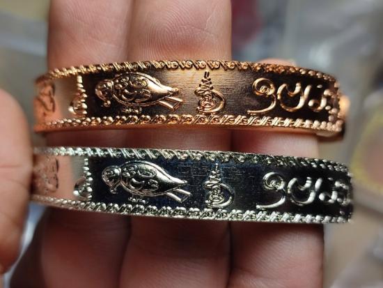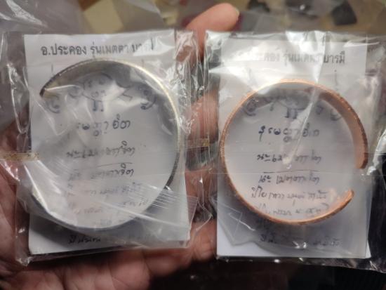 กำไล รุ่นเมตตา บารมี อาจารย์ประคอง ฆราวาสสายรามัญ(มอญ) สมุทรปราการ จำนวน 2 วง เงิน-ทอง พร้อมซองใบฝอยเดิม