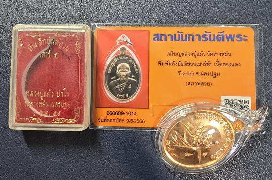 "บัตรรับรองสภาพสวย" เหรียญยันต์สวน เสาร์ห้า หลวงปู่แผ้ว วัดรางหมัน เนื้อทองแดง ปี 2555 ผิวไฟส้มๆ สวยครับ