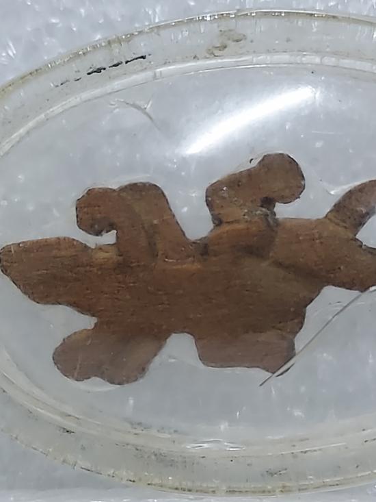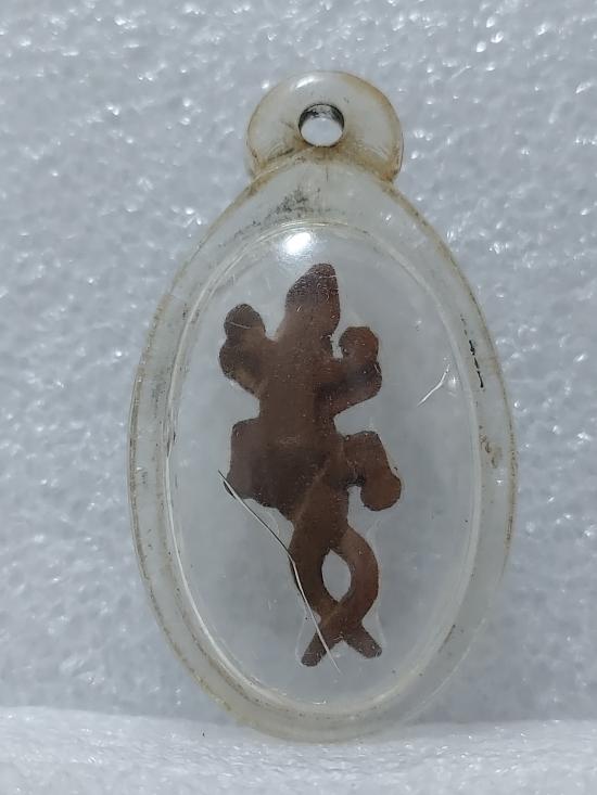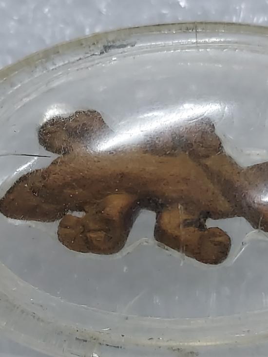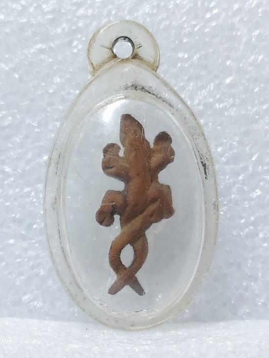 จิ้งจก หลวงปู่หน่าย ตัวเล็ก จากหัวถึงปลายหางประมาณ 2 ซม.ครึ่ง มีรอยจารเก่าด้านล่างตรงท้อง รอยจารอักขระเรียง