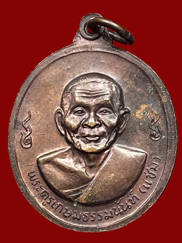 เหรียญหลวงพ่อเงิน วัดดอนยายหอม หลังหลวงพ่อแช่ม ปี 2516 เนื้อทองแดงรมดำ