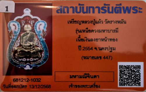 เหรียญเหนือดวง มหาบารมี หลวงปู่แผ้ว วัดรางหมัน เนื้อเงินลงยาราชาวดี หน้าทองคำ หมายเลข 447 สภาพสวยแชมป์ พร้อมบัตรรับรองครับ