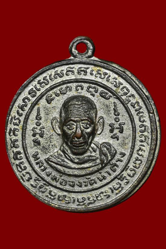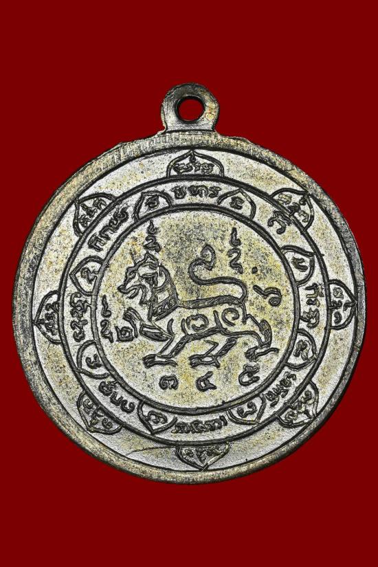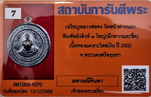 เหรียญกลม หลวงพ่อจง วัดหน้าต่างนอก พิมพ์หลังสิงห์ เลข ๓ ใหญ่ (มีกลาก) เนื้อทองแดงกะไหล่เงิน ปี 2502 พร้อมบัตรรับรองครับ