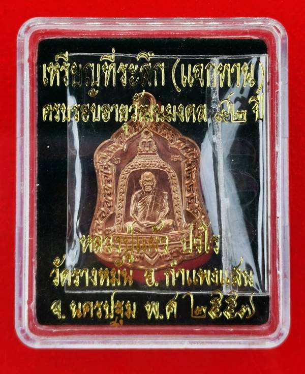 เหรียญระฆัง(แจกทาน)​ ​ปี57 หลวงปู่แผ้ว ปวโร วัดรางหมัน จ.นครปฐม มีกล่อง