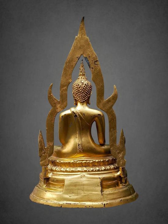 พระบูชา สมเด็จพระศรีเมืองทอง วัดต้นสน จ.อ่างทอง ปิดทองเดิมจากวัด "หมายเลขประจำองค์ 25" ตอก 2 จุด ที่ฐานและปลายซุ้มด้านหลัง ซุ้มสามารถถอดได้ ขนาดหน้าตัก 4 นิ้ว สูง 10.5 นิ้ว
