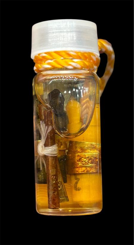 รัก ยม แช่น้ำมันอาถรรพ์ หลวงปู่หงษ์ท่านทำการเรียกจิตวิญญาณเด็กมาสถิตในหุ่นไม้แกะในขวดให้ดูแลรักษาคุ้มครอง ช่วยเหลือผู้เลี้ยงบูชา ให้โชคลาภ เมตตามหานิยม แก่ผู้เลี้ยงบูชา หรือทำตามคำขอของผู้เลี้ยงบูชา