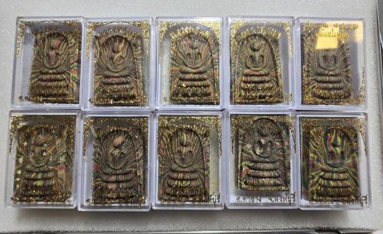 สมเด็จแพ 9 พัน เนื้อลายรัศมี ปี 2536 หลวงพ่อแพ วัดพิกุลทอง สิงห์บุรี 10 องค์ สภาพสวยสมบูรณ์พร้อมกล่องเดิม