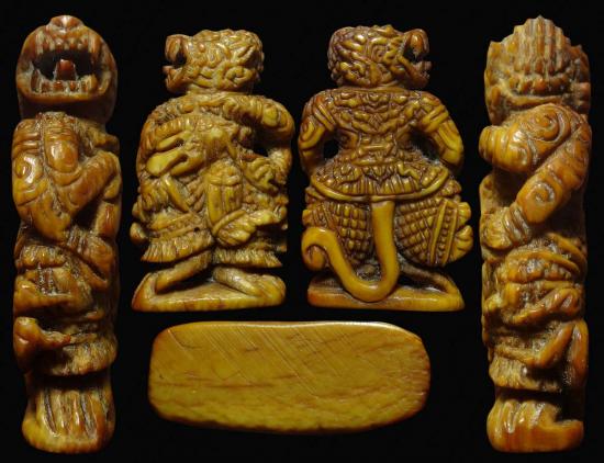 หนุมานงาแกะ ขนาดใหญ่ประมาณ 1 นิ้ว สูง 1.5 นิ้ว หนาเกือบ 1 ซม. จารอักขระยันต์ใต้ฐาน ไม่ทราบสำนักว่าเป็นสำนักใด ไม่ทราบที่ รบกวนพิจารณาให้ชอบก่อนเคาะจะได้ไม่เสียเวลากันครับขอท่านที่พร้อมรักชอบพร้อมโอนครับ