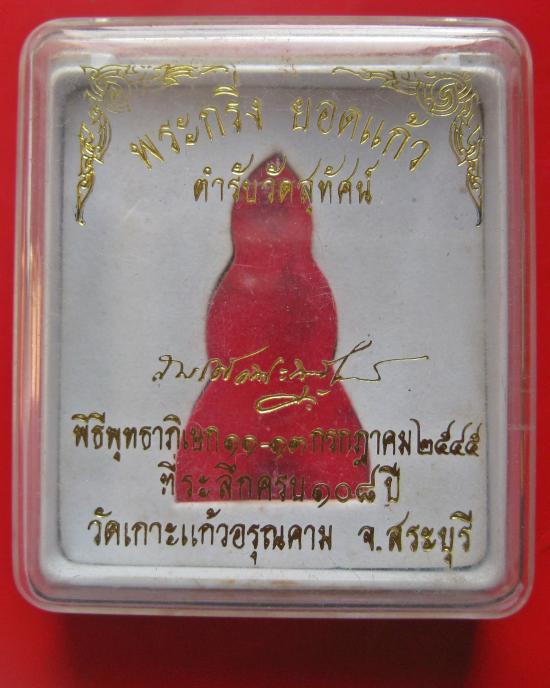 พระกริ่งยอดแก้ว วัดเกาะแก้วอรุณคาม สระบุรี ครูบาอิน วัดฟ้าหลั่ง ปลุกเสก เนื้อทองทิพย์ ปี 45