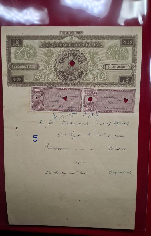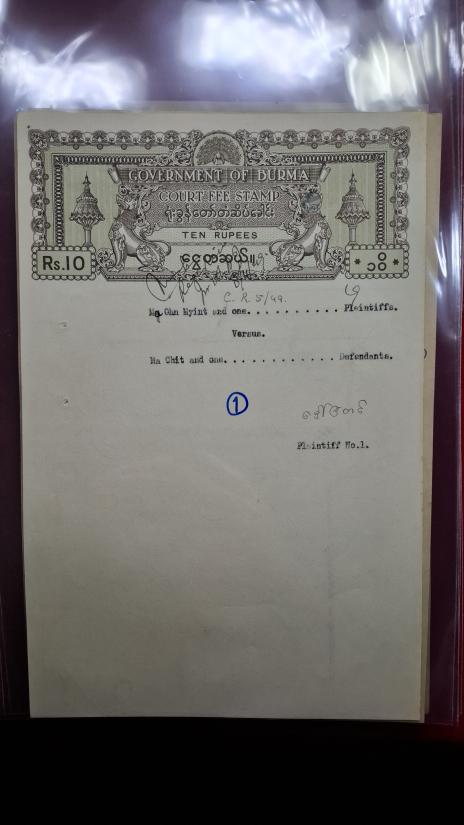 กระดาษอากรแสตมป์ของรัฐบาลพม่า ช่วงปี1936(พศ.2476) 5แผ่น