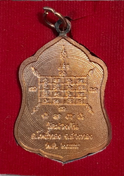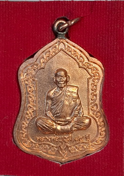 เหรียญปั๊มหูเชื่อม หลังกลึง ยันต์จม หลวงพ่อบุญี วัดม่วงคัน จ.อ่างทอง เนื้อทองแดงผิวไฟ พร้อมกล่องเดิมจากวัด