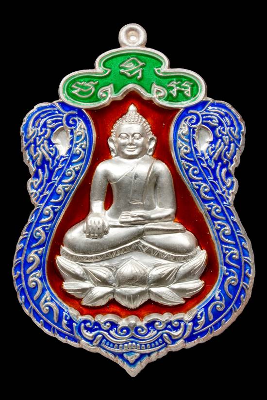 เหรียญหลวงพ่อสำเร็จศักดิ์สิทธิ์ ( เนื้อเงินลงยา 3 สี ) ตอก 2 โค๊ต ตอกหมายเลข ปี 2555 สภาพสวยครับ