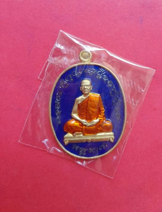 สวยๆเลขสวยๆเหรียญ เจริญพรไตรมาส 64 หลวงพ่อรัตน์ วัดป่าหวาย จ.ระยอง เนื้อฝาบาตรผิวไฟลงยาสีน้ำเงินจิวรเหลือง No.500