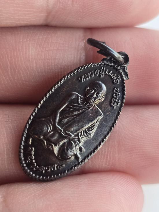 เหรียญใบขี้เหล็ก หลวงปูแผ้ว ปวโร รุ่นพิเศษหนุนดวง เนื้อทองแดงรมดำ พิมพ์เล็ก องค์ที่1