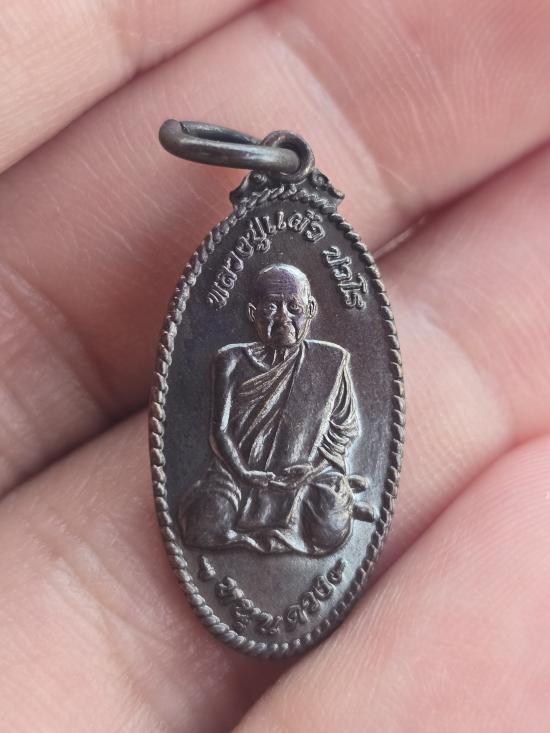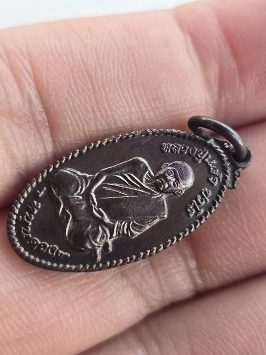 เหรียญใบขี้เหล็ก หลวงปูแผ้ว ปวโร รุ่นพิเศษหนุนดวง เนื้อทองแดงรมดำ พิมพ์เล็ก องค์ที่2