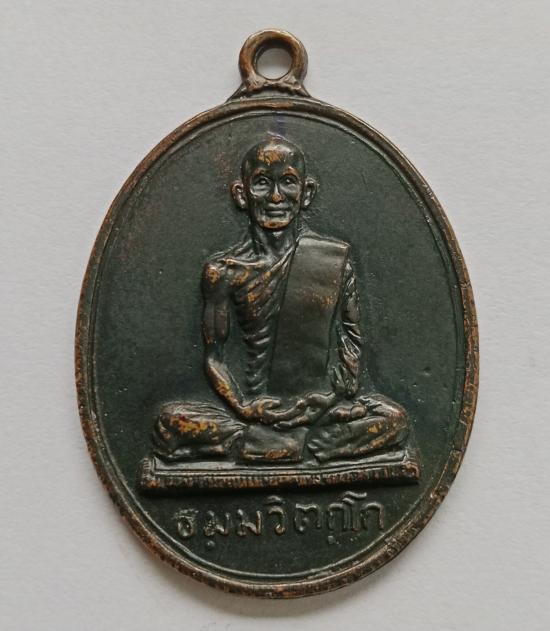เหรียญนักกล้าม ท่านเจ้าคุณนรฯ วัดเทพศิรินทรฯ พิมพ์สังฆาฏิ (( ต หางสั้น )) เนื้อทองแดง ปี 2513 (สภาพรมดำใหม่) พร้อมบัตรรับรอง ตามรูป