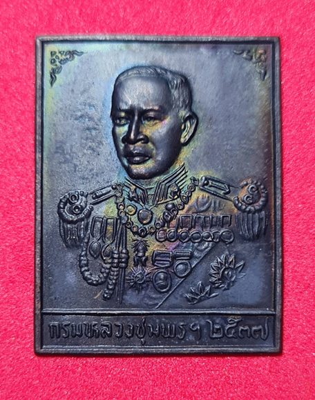 แผ่นปั๊มกรมหลวงชุมพร เนื้อนวปี 2537 จัดสร้างในงานเทอดพระเกียรติ์กรมหลวงชุมพรเขตต์อุดมศักดิ์ ของจังหวัดชุมพร เหรียญปลุกเสกโดยอาจาร์ยศรีเงิน แห่งวัดดอนศาลา