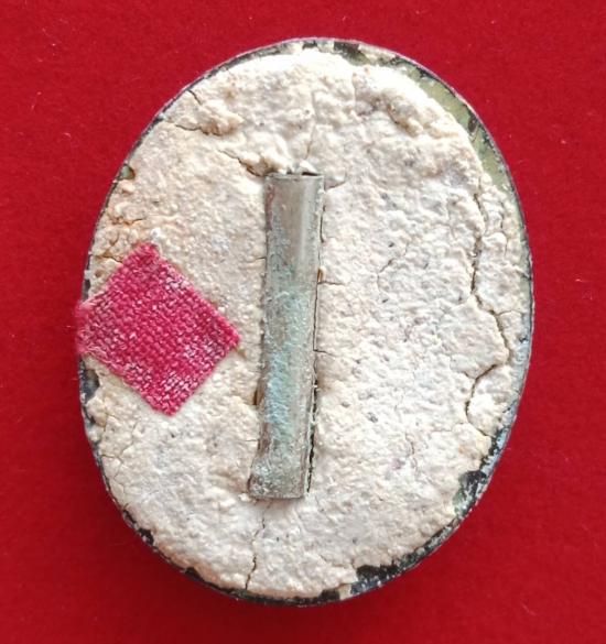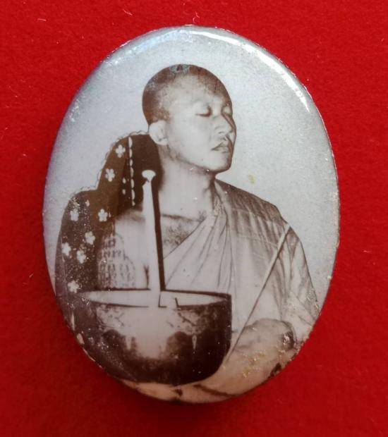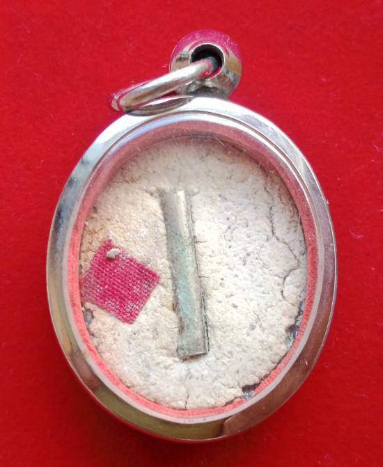 ล็อกเก็ตเปิดฟ้าฉากเทา หลังบรรจุผงพุทธคุณ ตะกรุด 1 ดอก ผ้าธงแดง หลวงพ่อชำนาญ วัดบางกุฎีอง จ.ปทุมธานี ปี2548+ตลับสแตนเลส ตามรูป